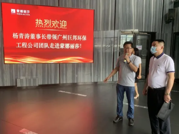 ?2021年8月14日上午,為了更好了解企業(yè)環(huán)保需求及企業(yè)管理發(fā)展方向,廣州巨邦環(huán)保工程設(shè)備有限公司楊青濤董事長(zhǎng)及周彥群總經(jīng)理帶領(lǐng)公司管理層12名干部前往佛山南海區(qū)西樵鎮(zhèn)太平工業(yè)區(qū)上市公司--蒙娜麗莎集團(tuán)股份有限公司進(jìn)行實(shí)地參觀交流。